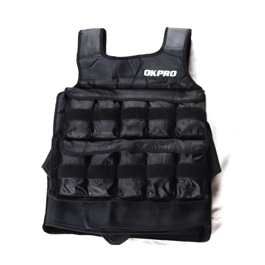 O colete vem com recheio de areia. Está disponível em 10kg e possui duas alças em duas alturas, confeccionadas em nylon elástico. São ajustáveis para que possa calçá-lo com o maior conforto, pelo que também é confeccionado sobre uma estrutura acolchoada.
