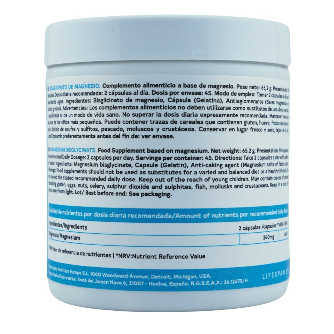 Entre os principais benefícios do bisglicinato de magnésio, destacamos, em primeiro lugar, sua contribuição para a melhora da saúde muscular e a prevenção da fadiga. Além disso, o bisglicinato de magnésio é especialmente recomendado para quem pratica exercícios físicos regularmente, para pessoas com trabalhos fisicamente exigentes ou para indivíduos muito ativos, visto que o magnésio é essencial para o bom funcionamento do sistema muscular. Por isso, níveis adequados de magnésio podem ajudar a aumentar a energia e minimizar a fadiga. Também é importante ressaltar que o bisglicinato de magnésio auxilia na redução de cãibras nas pernas. Diversos estudos realizados com gestantes demonstraram que o consumo de magnésio pode ajudar a reduzir a frequência e a intensidade das cãibras. Ademais, o bisglicinato de magnésio é ideal para quem deseja prevenir cãibras musculares, pois contribui para o equilíbrio eletrolítico adequado. O bisglicinato de magnésio também contribui para a saúde do sistema nervoso, estando associado a um maior relaxamento muscular e à redução dos níveis de ansiedade, o que contribui para uma melhor qualidade do sono. Da mesma forma, estudos sugerem que o magnésio pode ser benéfico em casos de fadiga mental e para a melhora da memória. Portanto, o bisglicinato de magnésio também é recomendado para pessoas que vivenciam períodos de estresse mental. Outro benefício do bisglicinato de magnésio é sua capacidade de ajudar a reduzir a pressão arterial, sempre de forma moderada, especialmente em pessoas com deficiência de magnésio. O bisglicinato de magnésio também contribui para a melhoria da saúde óssea, pois desempenha um papel ativo na formação óssea e influencia os níveis de vitamina D e hormônio da paratireoide, elementos envolvidos no desenvolvimento ósseo. Em relação à saúde óssea, os adultos tendem a se beneficiar mais do consumo de bisglicinato de magnésio, já que os níveis de magnésio em nossos corpos tendem a diminuir com a idade. Devemos também considerar que o bisglicinato de magnésio ajuda a regular os níveis de açúcar no sangue, pois alguns estudos indicam que uma dieta rica em magnésio pode reduzir o risco de desenvolver diabetes tipo 2, uma vez que o magnésio contribui para a metabolização do açúcar.